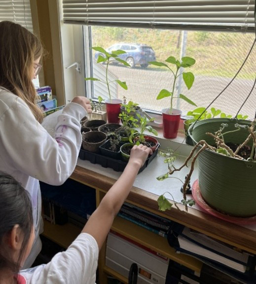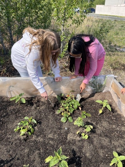 Our students have taken charge of their learning, from placing votes on the types of plants and specific seeds that they wanted to see grown, to clearing out the garden beds and preparing them for the soil, to the physical planting with our community members. They tend to the gardens and to the seedlings that are in the classroom, watering them frequently and problem-solving with Alissa when a plant looks like it is not thriving. They keep a watchful eye for the growth of new berries, beans, and to see how the root vegetables are growing. The garden completion has been a goal of mine, the Principal, since I arrived at the school in August 2024. Being new to the school, community, and territory has brought its challenges, but this grant has given me the opportunity to connect with neighbours and community members, collaborate deeply with staff, and find creative sources for things like soil, funds, support, etc. I am so happy to be able to say that we finally filled all of the garden beds, and get to watch as the fruits of our labour grow day by day!